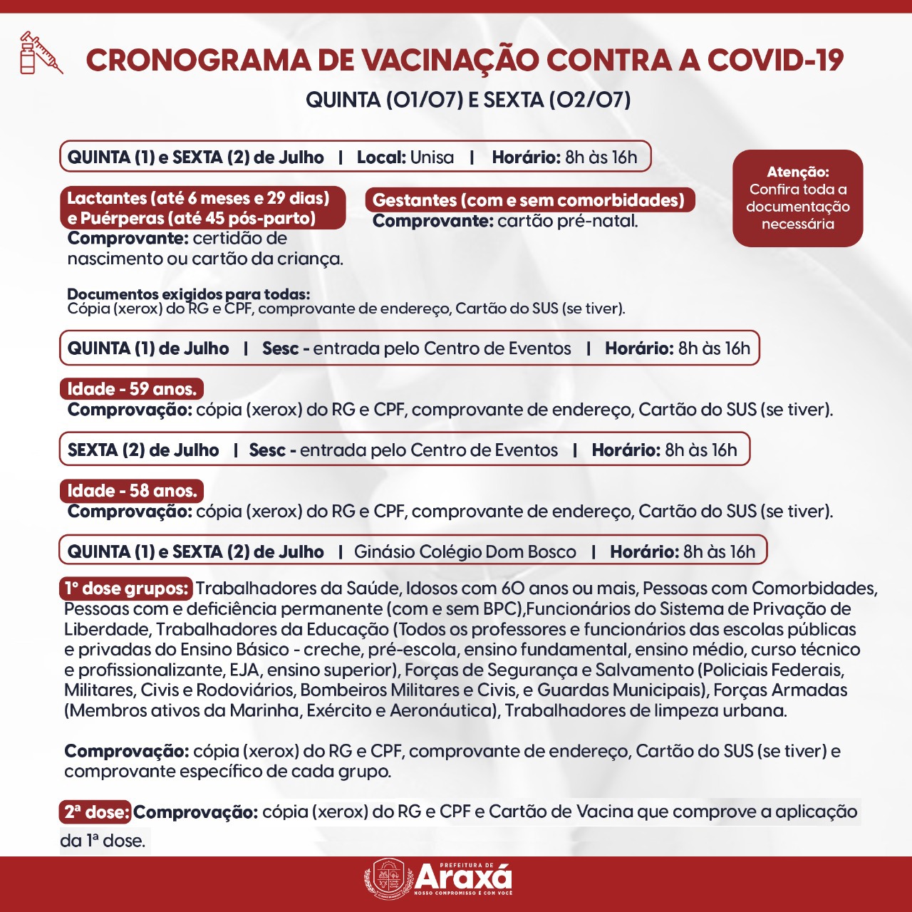 Covid-19 nesta quinta-feira (1º). O novo cronograma destina o imunizante para